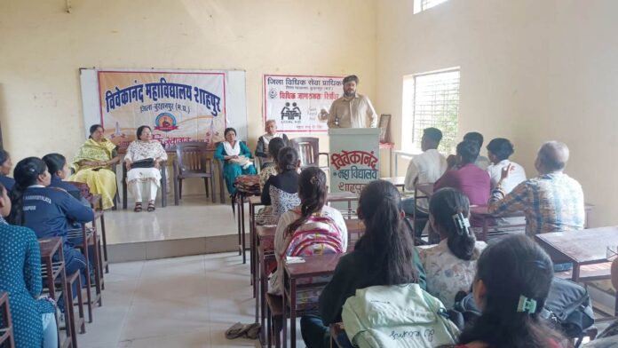 बुरहानपुर नि.प्र. :- राष्ट्रीय विधिक सेवा प्राधिकरण, नई दिल्ली एवं म प्र. राज्य विधिक सेवा प्राधिकरण, जबलपुर के निर्देशानुसार एवं माननीय प्रधान जिला एवं सत्र न्यायाधीश / अध्यक्ष जिला विधिक सेवा प्राधिकरण बुरहानपुर के यथानिर्देशान्सार सामाजिक न्याय दिवस के उपलक्ष्य में विधिक साक्षरता शिविर का आयोजन स्वामी विवेकानंद महाविद्यालय शाहपुर बुरहानपूर व ठाकुर शिवकुमार सिंह महाविद्यालय झिरी बुरहानपुर में किया गया ।