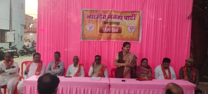 बुरहानपुर। भाजपा जिला कार्यालय पर जिले के भाजपा जनप्रतिनिधीयों एवं पदाधिकारीया की एक बैठक आयोजीत की गई। इस बैठक में भाजपा जिलाध्यक्ष डॉ. मनोज जी माने द्वारा भाजपा समर्पण निधी अभियान 11 फरवरी से 28 फरवारी तक चलाए जाने को लेकर जानकारी दी। वही प्रदेश भाजपा प्रवक्त्ता,पूर्व मंत्री एवं विधायक श्रीमती अर्चना चिटनिस दीदी ने 1 4 फरवरी 2026 को प्रदेश के यशस्वी मुख्यमंत्री माननीय डॉ. मोहन यादव जी बुरहानपुर दौरे को लेकर चर्चा की।